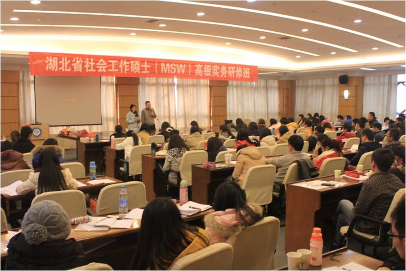 、华中科技大学、华中师范大学、华中农业大学、武汉科技大学、中南民族大学等六所高校的在校社会工作硕士参加了此次研修班。研修班在中南民族大学图书馆报告厅举行。