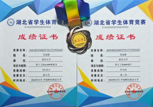 参赛。在11月9日的400米栏项目比赛中,吴冠强凭借着长时间刻苦训练以及赛场上全力以赴的精彩发挥,以57.78秒的成绩获得第3名,夺得了一枚宝贵的铜牌。在4*100米男子接力中,吴冠强与队友一起获得了第6名的好成绩。