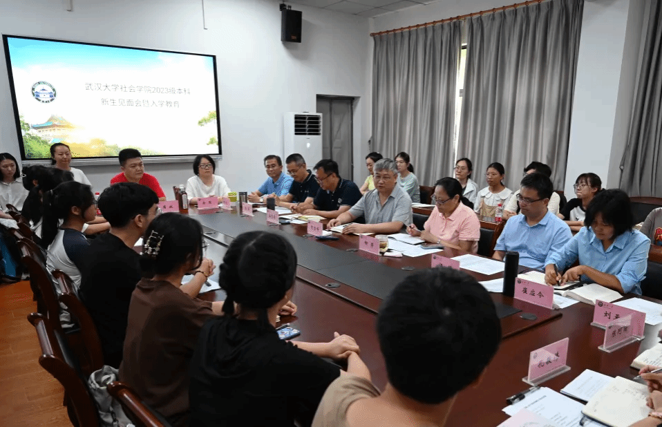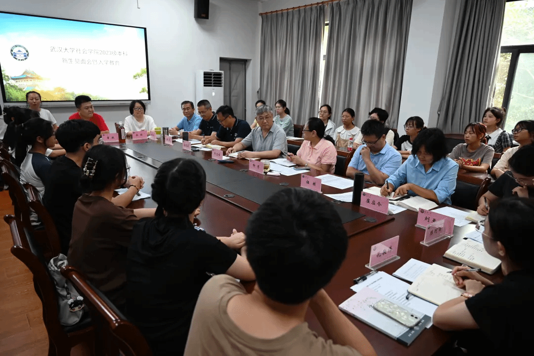 102会议室召开了2023级本科新生见面会暨入学教育。院党委书记柳芳,院长贺雪峰,院党委副书记应志豪,副院长伍麟、桂华,党政办公室主任陈倩,党政办公室副主任余园、商政,2023级新生班级导师崔应令老师、刘天元老师,辅导员陈珂丽、孔敬伟和2023级53位新生参加了见面会。会议由院党委副书记应志豪主持。
