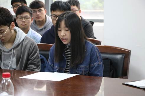 会议第四项由学生代表苏嘉烨同学以“铭记五四,不忘初心”做主题发言,苏嘉烨同学回望了五四运动这段波澜壮阔的历史,号召学生骨干学习五四精神,在学习工作中起到模范带头作用,并代表学生骨干作出了“明确位置,服务同学”、“努力学习,树立标杆”、“坚定自我,敢于锻炼”三点承诺。