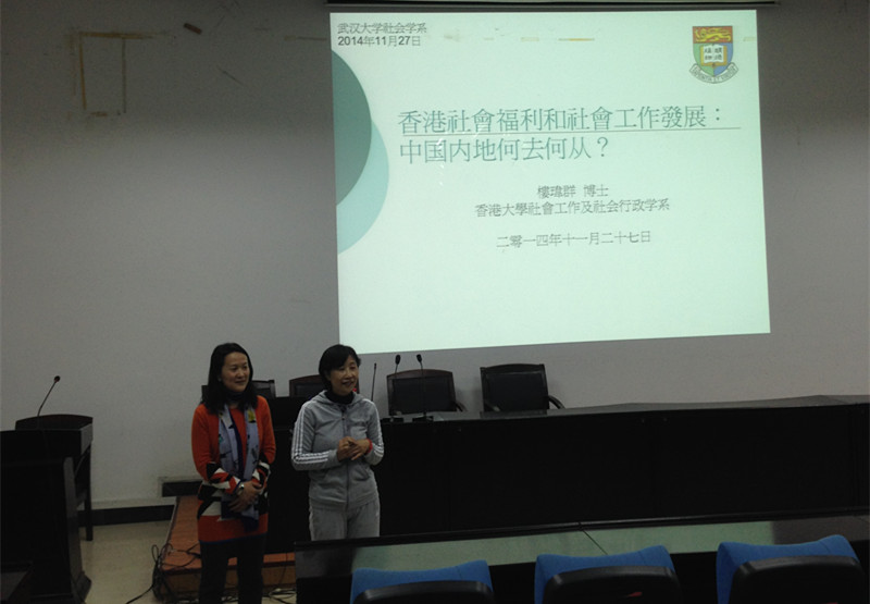 11月27日上午10点,应社会学系邀请,香港大学社会工作与社会政策系楼玮群助理教授来到珞珈山,为我系师生带来了一场题为《香港社会福利与社会工作发展:中国内地何去何从?》的行业发展前沿讲座。此次讲座由社会学系副系主任慈勤英教授主持,我系社会工作专业硕士研究生、本科生参与了讲座。